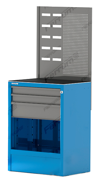 Цветовое исполнение: синий корпус RAL5015, ящики/двери cерый металлик RAL 9007.