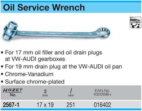 Ключ для обслуживания масленых систем 17х19 HAZET 2567-1 купить в Вологде и других городах России