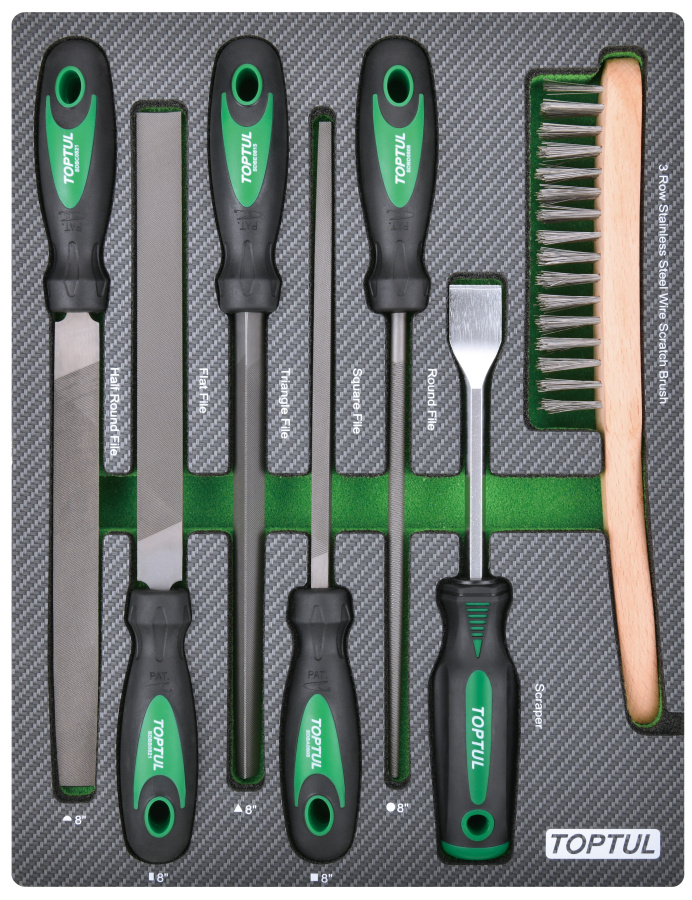 Набор инструментов, напильники, шабер и щетка, 7 пр. в мягком ложементе TOPTUL GEB0705 купить в Вологде и других городах России