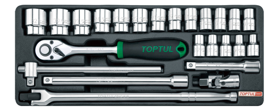 Набор головок и аксессуаров 1/2" 6-32 мм, 24 предмета, в ложементе TOPTUL GCAT2402 купить в Вологде и других городах России