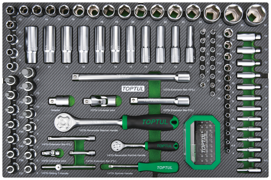 Набор головок и аксессуаров 1/4" и 1/2" 6-гр.,133 пр. в мягком ложементе TOPTUL GEDD348 купить в Вологде и других городах России
