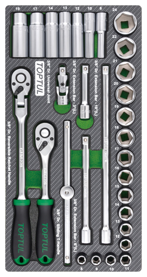Набор головок и аксессуаров 3/8", 30 пр. в мягком ложементе TOPTUL GEA3005 купить в Вологде и других городах России