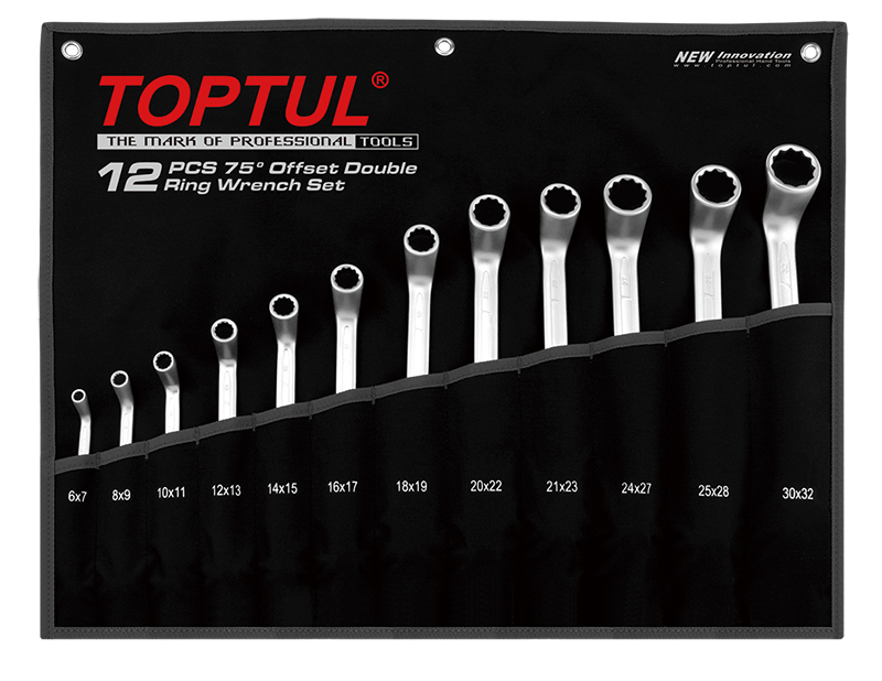 Набор ключей накидых 75º 6-32 мм, 12 предметов на полотне TOPTUL GPAI1202 купить в Вологде и других городах России