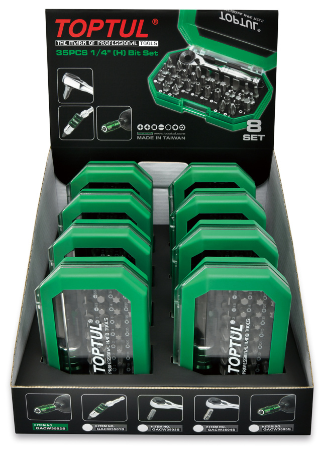Набор бит 1/4" с трещоткой 35 пр. Display Box (8 комплектов) TOPTUL GACW3503S купить в Вологде и других городах России