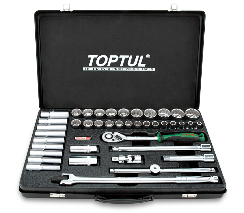Набор головок и аксессуаров 1/2" 12-гранных 8-32 мм, 41 предмет в метал. кейсе TOPTUL GCAD4103 купить в Вологде и других городах России