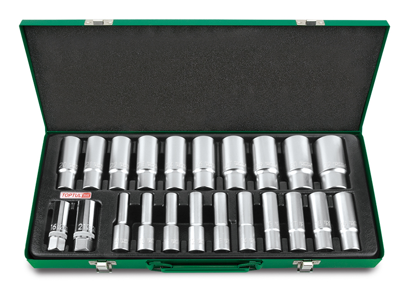 Набор головок удлиненных 1/2" 6-гранных 8-32 мм, 22 предмета в метал. ящике TOPTUL купить в Вологде и других городах России