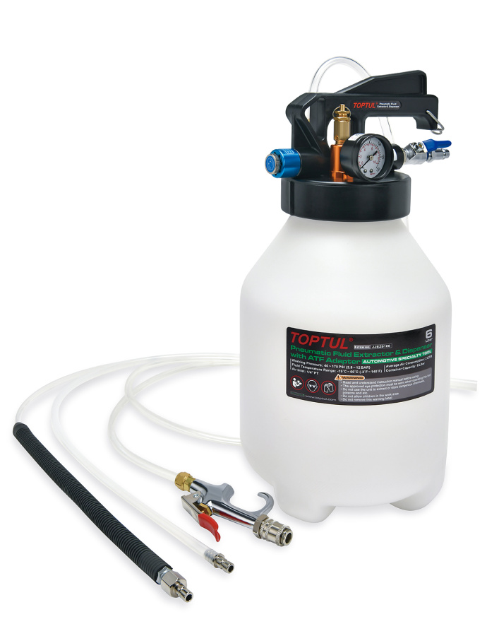 Приобрести Устройство для заправки АКПП 6 л., пневматическая, в комплекте с адаптерами TOPTUL от компании Toptul (Тайвань) из раздела Трансмиссия и коробка передач по цене 25 070 рублей.